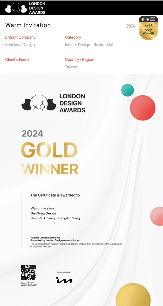 獲獎 | 英國 London Design Awards 金獎